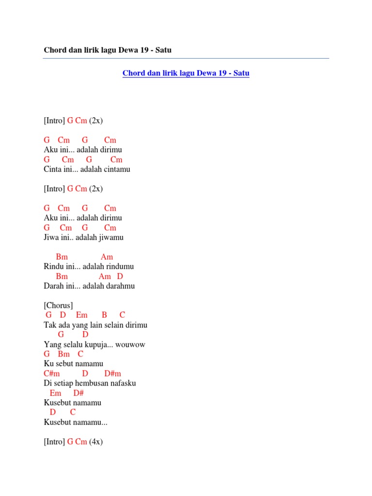 verse 2 a e a sekeja. Dapatkan lirik lagu lain oleh dewa 19 di kapanlagi.com. Album tersebut rilis pada tahun 1994 lewat label rekaman. A e terdengar lirih bisikanmu. E yang tak mungkin terlupa. C#m yang dulu tersimpan b a dan tak mau pergi. Berikut ini chord lagu aku milikmu dari dewa 19. D g coba dengarkanlah sumpahku. Chordtela dewa 19 mp3 & mp4. E a c#m jangan dengar kata mereka, yang tak ingin kita satu. 9 years ago9 years ago. G d g sekejap cinta yang terjalin, dari sebuah cerita d bm yang tak mungkin terlupa, terukir di hati a g dan tak mau pergi. Download lagu chordtela dewa 19 mp3 dapat kamu download secara gratis di metrolagu.